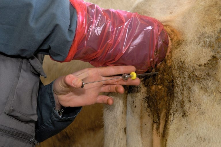 Dairy cows are then artificially inseminated after being restrained in a narrow chute known as a "rape rack." In this chute, a dairy worker inserts one of his arms into the rectum of a restrained cow and, with his other arm, inserts a rod-like device called an Al gun into her vagina and injects the semen directly into her uterus.