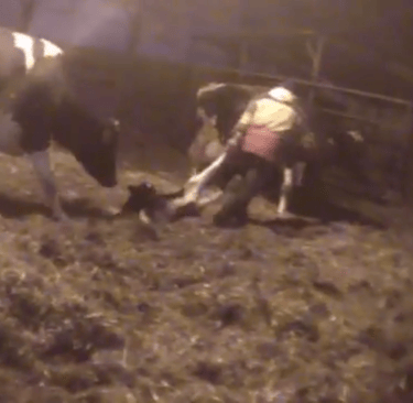 until shooting a bolt into the calfs brain to stun it, followed by slitting it's throat to kill it?